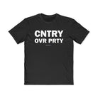 Country over cult. The CNTRY OVR PRTY tee calls for true patriotism — one that prioritizes people and principles over political loyalty.