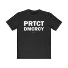 Stand for something. The PRTCT DMCRCY Tee isn’t just a shirt — it’s a statement. Designed for comfort, but built for protest, this tee is made for bold individuals who refuse to stay silent. Whether you’re showing up at rallies, gathering with friends, or making noise online, this soft tee helps you speak out without saying a word.