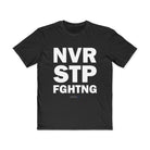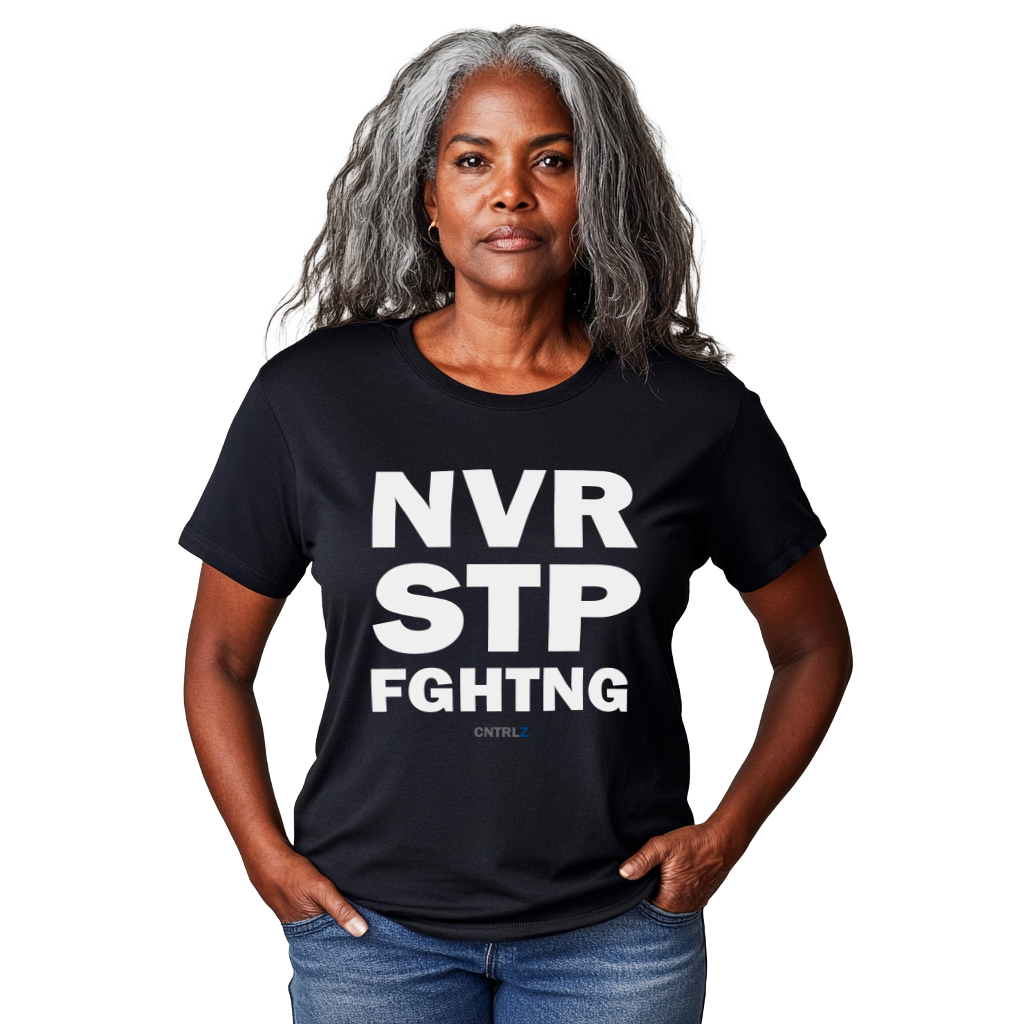 The work of saving democracy doesn’t end in one election or one news cycle — and neither do we. The NVR STP FGHTNG tee is a tribute to the people who stay in the fight, no matter how hard or how long. It’s made for those who organize, resist, and rise again — because justice takes persistence.